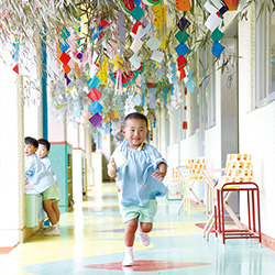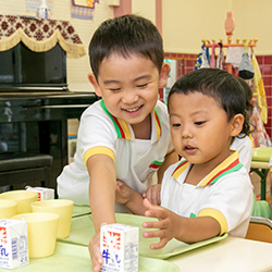 異年齢の友達や先生と楽しいグループ作りを通して、その中でいたわりや協力する気持ちを育てます。