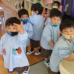日々のあいさつ・返事、手洗い、歯みがき、登園してからの着替え、週3回の朝の会での整列・行進等、3年間繰り返すことで、子どもたちは無理なく基本的な生活習慣を身につけていきます。